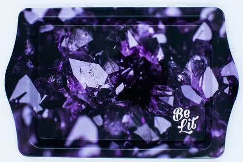 Be Lit have been consistently unveiling new, eye-catching designs of cool rolling trays and this amethyst travel rolling tray is a perfect example. Featuring an image of amethyst crystal in regal purple, this rolling tray provides you premium visuals while allowing you a supportive surface for rolling on the go. Its simple design offers the perfect platform for rolling joints including a raised lip to keep your finely ground bud where you want it. This basic design leaves the travel rolling tray easy to clean and maintain and even easier to store out of the way when not in use. Roll in style whether at home or on the go with the Amethyst Travel Rolling Tray from Be Lit.