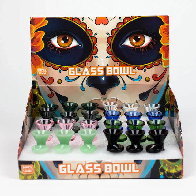 For all 14mm female joint users, this set includes 24 glass bowls in a box featuring 8 vibrant colors. Perfect for adding some variety to your collection!