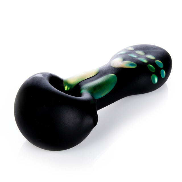 The haunting Black Skull Spoon Hand Pipe from Red Eye Glass® features ghoulish 24K gold accents, a flat mouthpiece design, and a fear-inducing frosted finish for only the bravest of cannabis consumers. Smokers beware, you're in for a scare! Includes a Red Eye Glass® Protective Neoprene Pouch.